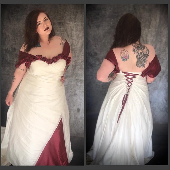 Sale Alternative Wedding Dress Ivory Dress With Red Roses Etsy
