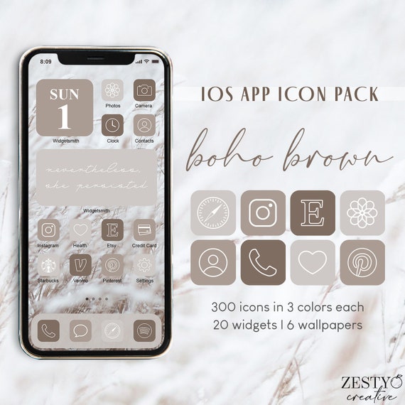 Boho Brown Ios App Icon Pack 300 Einzigartige Symbole In Etsy De